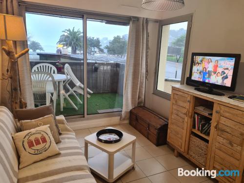 这家公寓提供露台,享有海景,配有1间卧室、起居室、平板电视、带冰箱和微波炉的设施齐全的厨房以及1间带淋浴设施的浴室。这家公寓还提供休息区、洗衣机以及1间带吹风机的浴室。